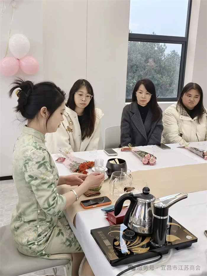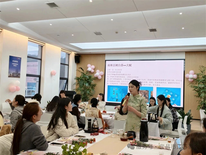 活动特邀宜昌草木人高级茶艺师拨开千年茶史烟云:从神农尝草的传说,到陆羽《茶经》的智慧;从唐宋煎茶的风雅,到明清瀹茗的简约。老师妙语连珠,将茶的故事讲得鲜活有趣,姐妹们时而凝神倾听,时而会心一笑,仿佛随那茶马古道,穿越了时光。茶史即文化史,茶道即修身道——在氤氲茶烟中,大家读懂了文化自信的深沉力量。